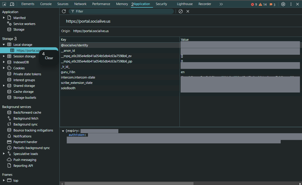 - Right-click on the option that reads "https://portal.socialive.us" and select Clear to delete it.