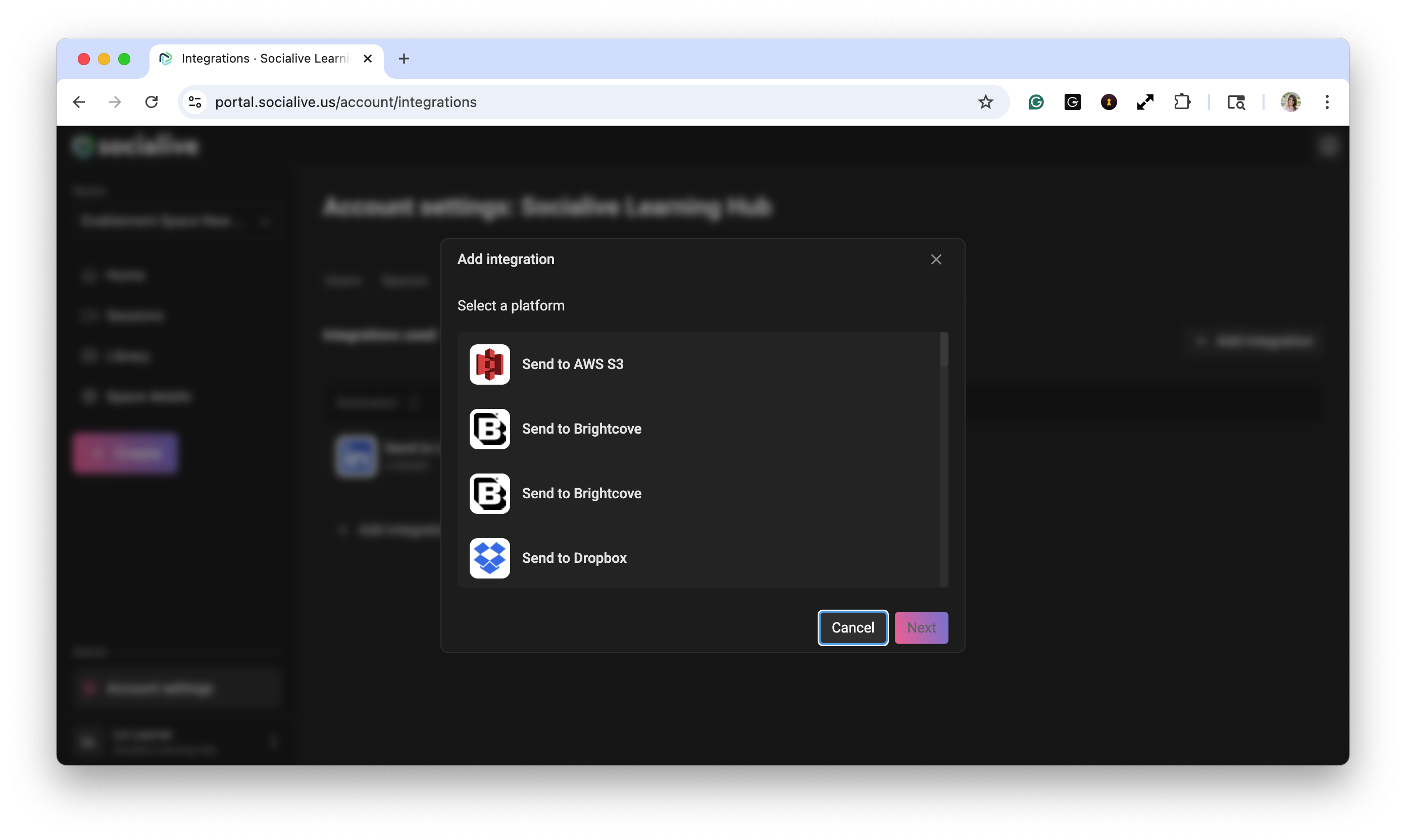 This article provides instructions on how to connect your Slack account to Socialive. Integrating Slack to Socialive allows you to send Socialive recordings directly to channels or users you specify (can be multiple).