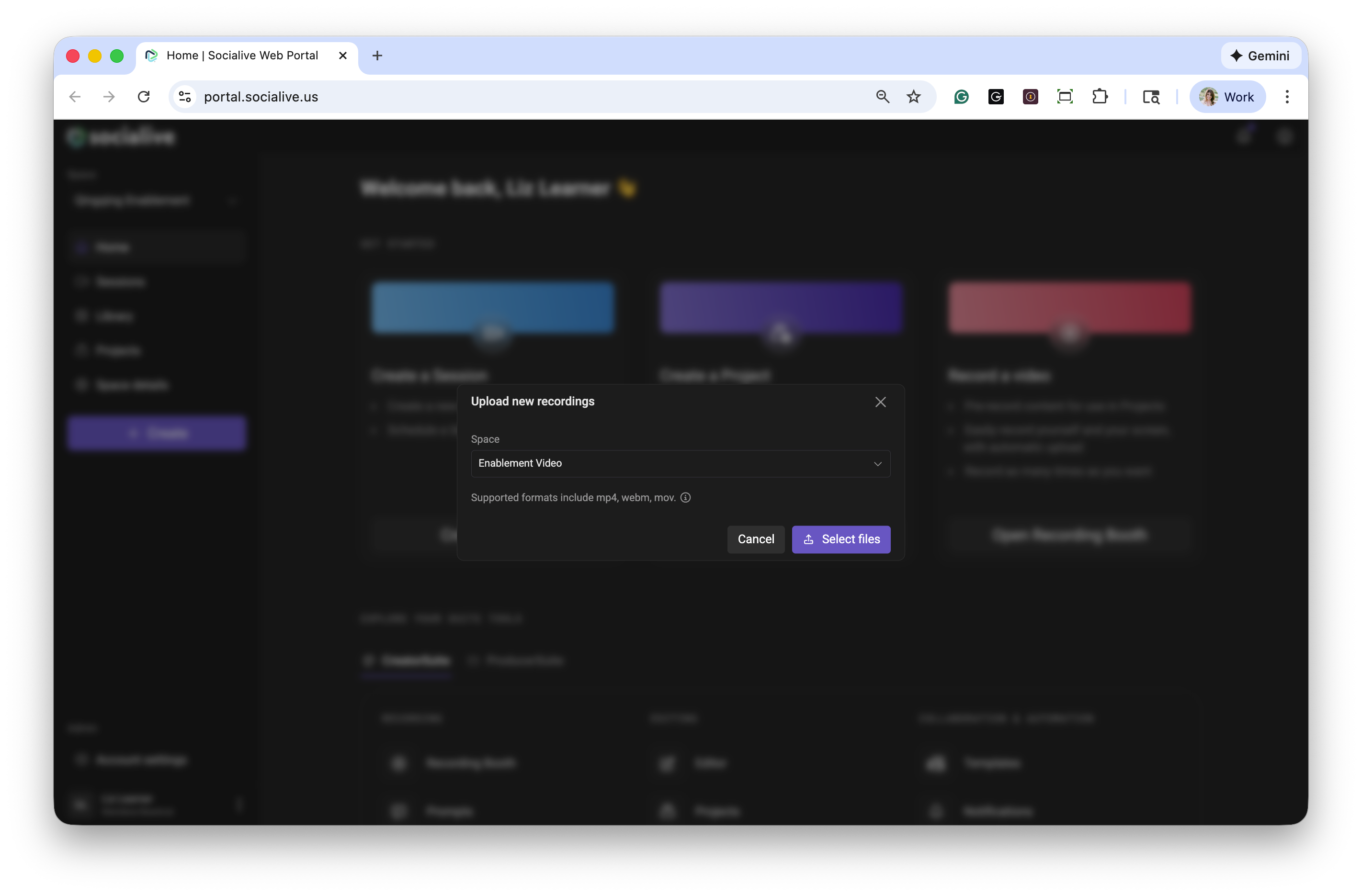 Upload videos captured from your desktop to the Library using the upload feature. This article provides instructions to upload recordings from the desktop to Socialive.