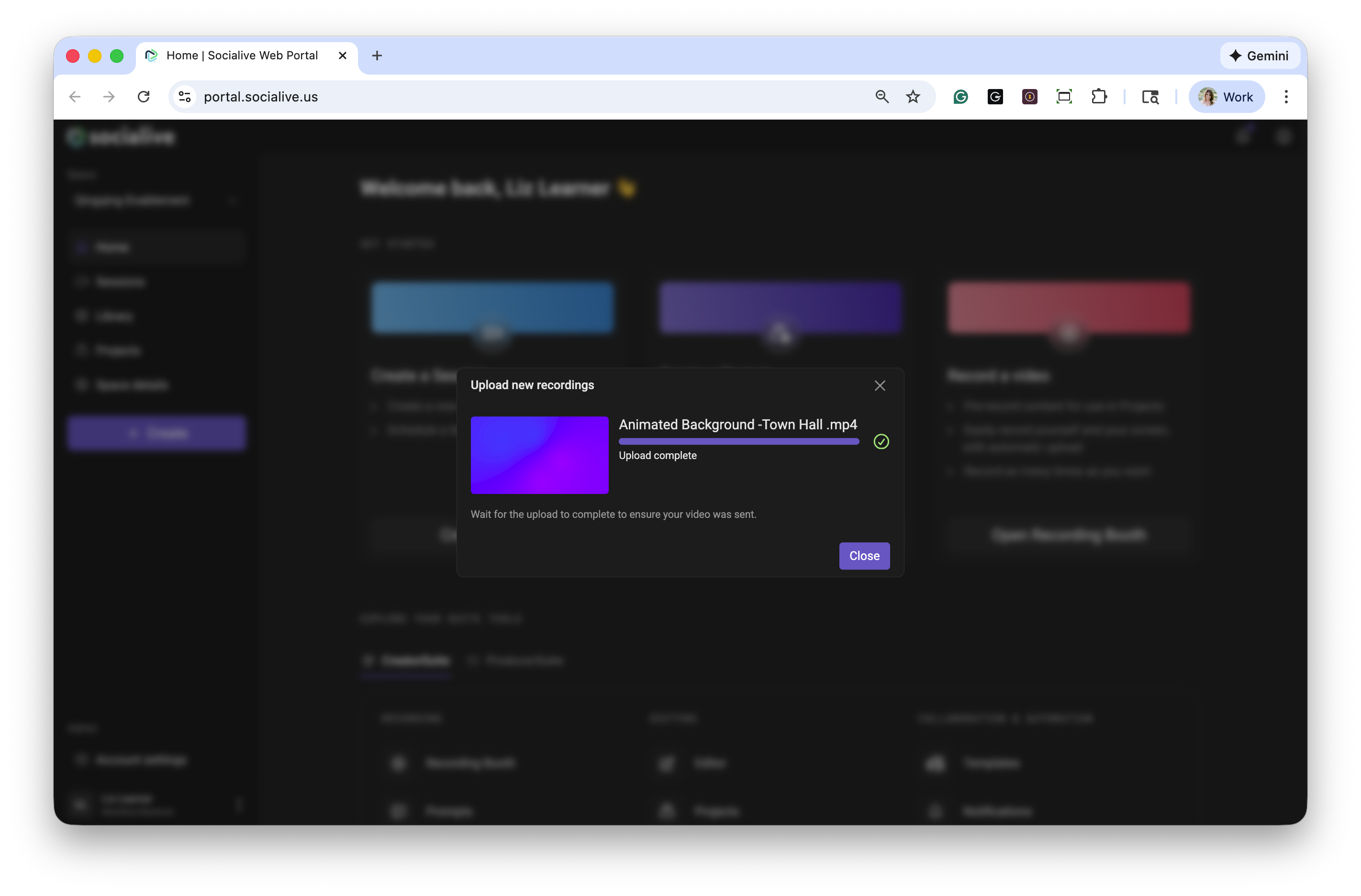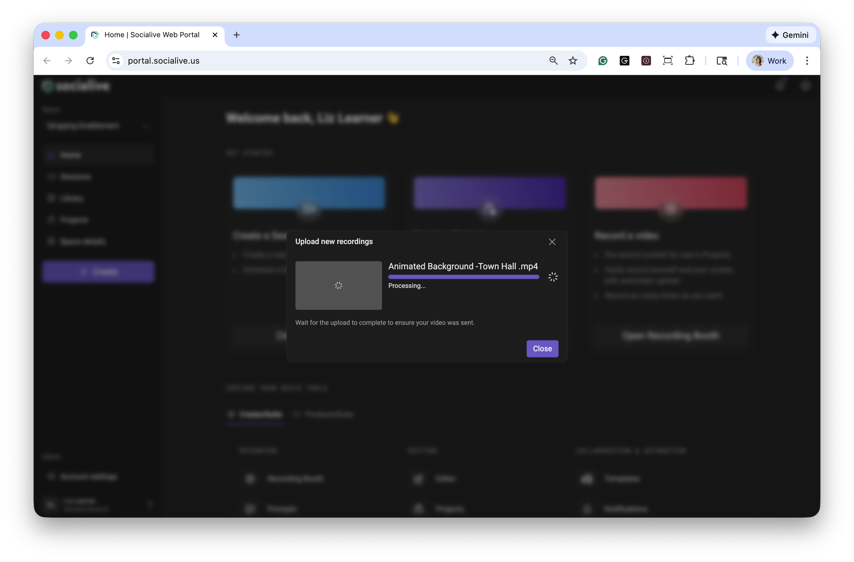 Once the videos are uploaded, you can leave Socialive while they are being processed.