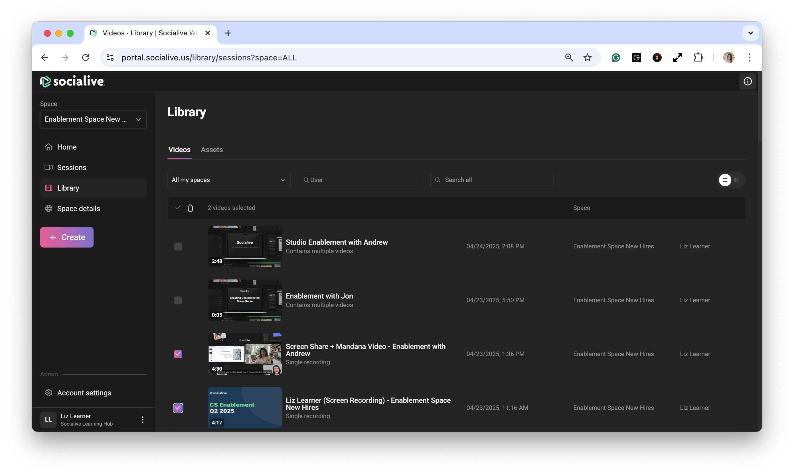 Managing content across multiple projects just got easier. With the new All Spaces View and Bulk Delete features in the Library, you can now see everything happening across your account—and clean up content faster than ever. Whether juggling multiple Spaces or tidying up large batches of videos, these updates give you more visibility and control right where you need it.