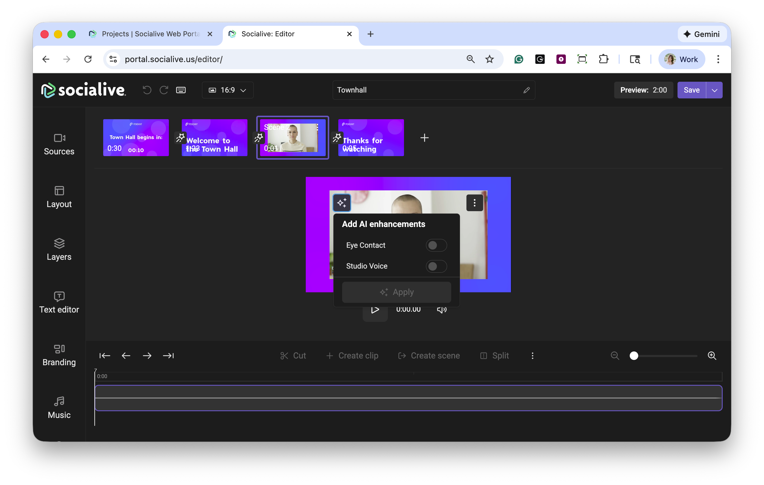 If you need to revert back to the original video without studio voice you can do so by selecting the AI icon. You can also view all versions of the AI enhancements by clicking View all versions.